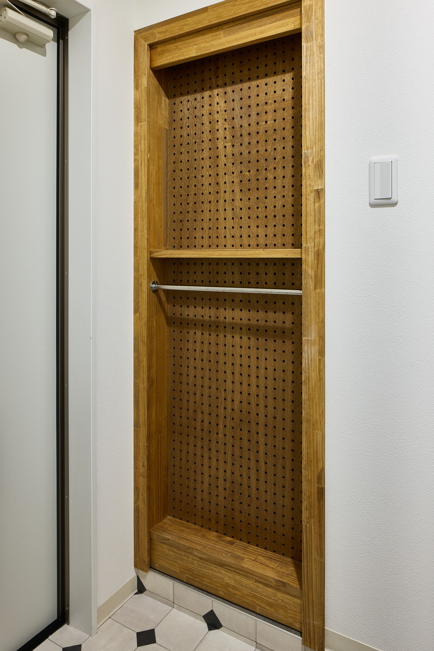 実は壁の一部が開いて、そのの奥に秘密のバックヤード(収納)が!